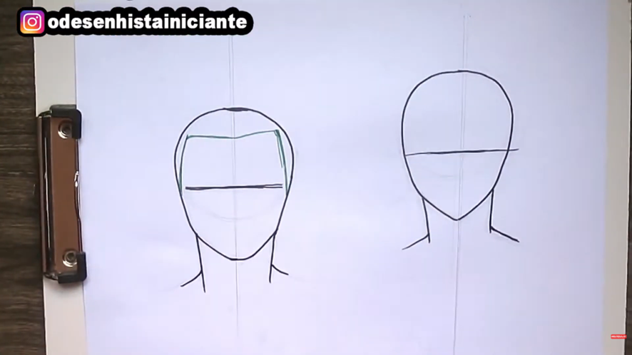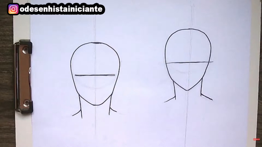 É importante que antes de desenhar o cabelo, você trace a base da cabeça: crânio e linha de testa.
