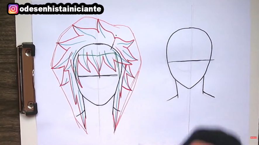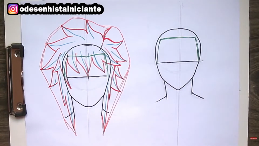 Dessa forma, é possível entender a proporção do cabelo na cabeça do personagem, evitando que fique um desenho desconexo.