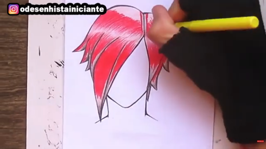 Com a técnica do volume do cabelo do personagem, é possível desenhar as mechas com maior facilidade, sem ultrapassar a delimitação.